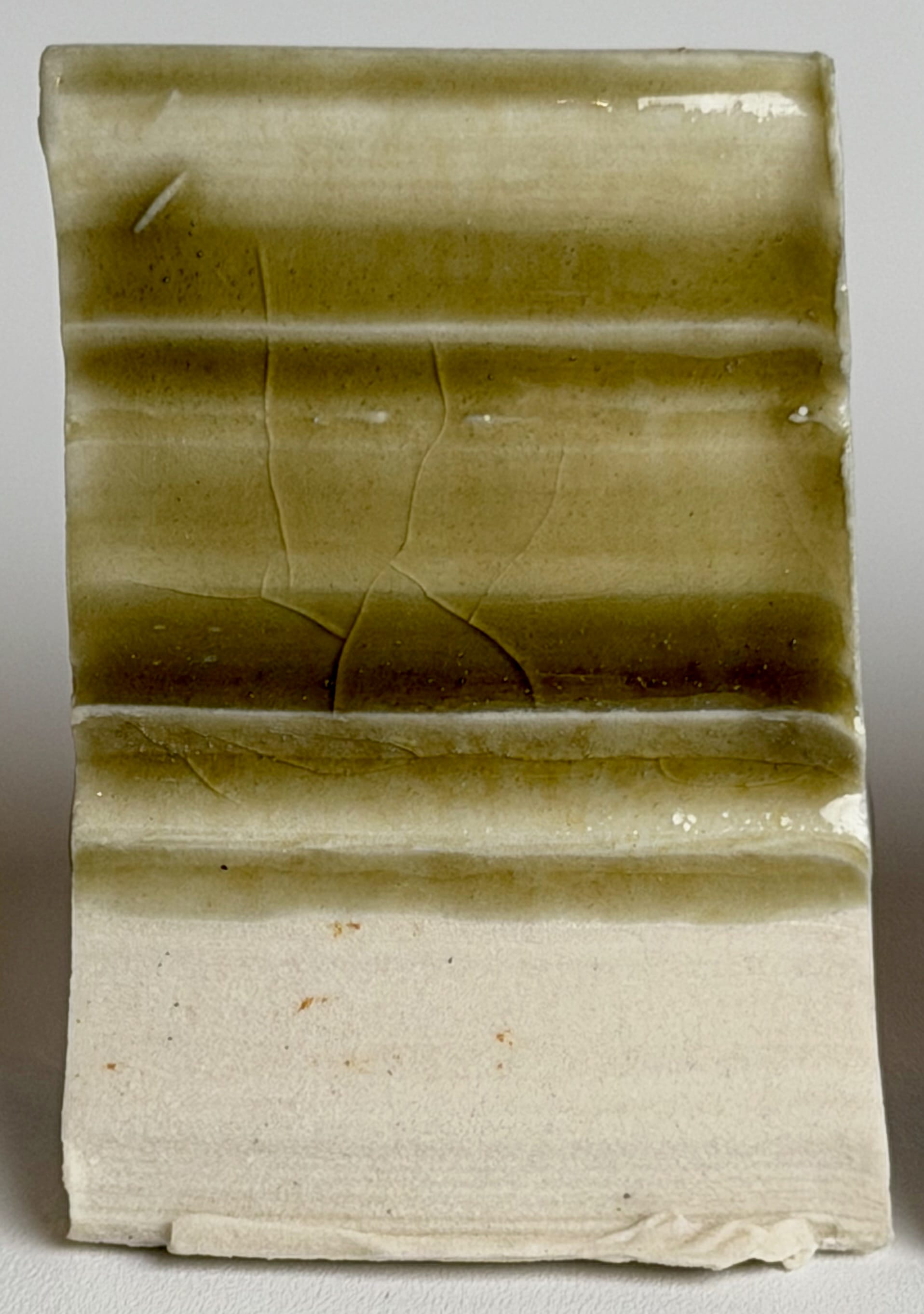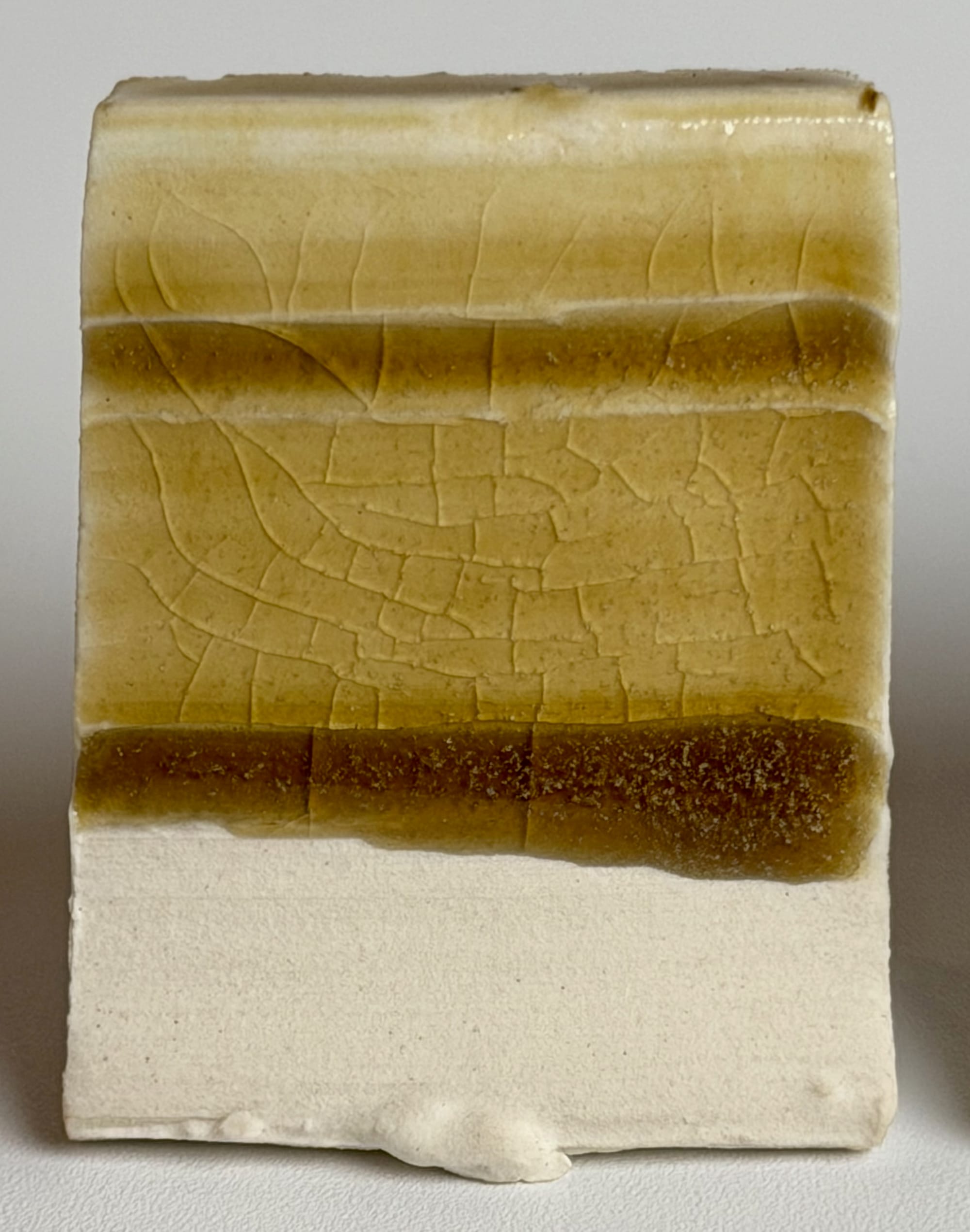 The base glaze (above, Tile 2) is particularly pretty in this example being a honey-yellow and shows micro crystal development in its thicker regions.