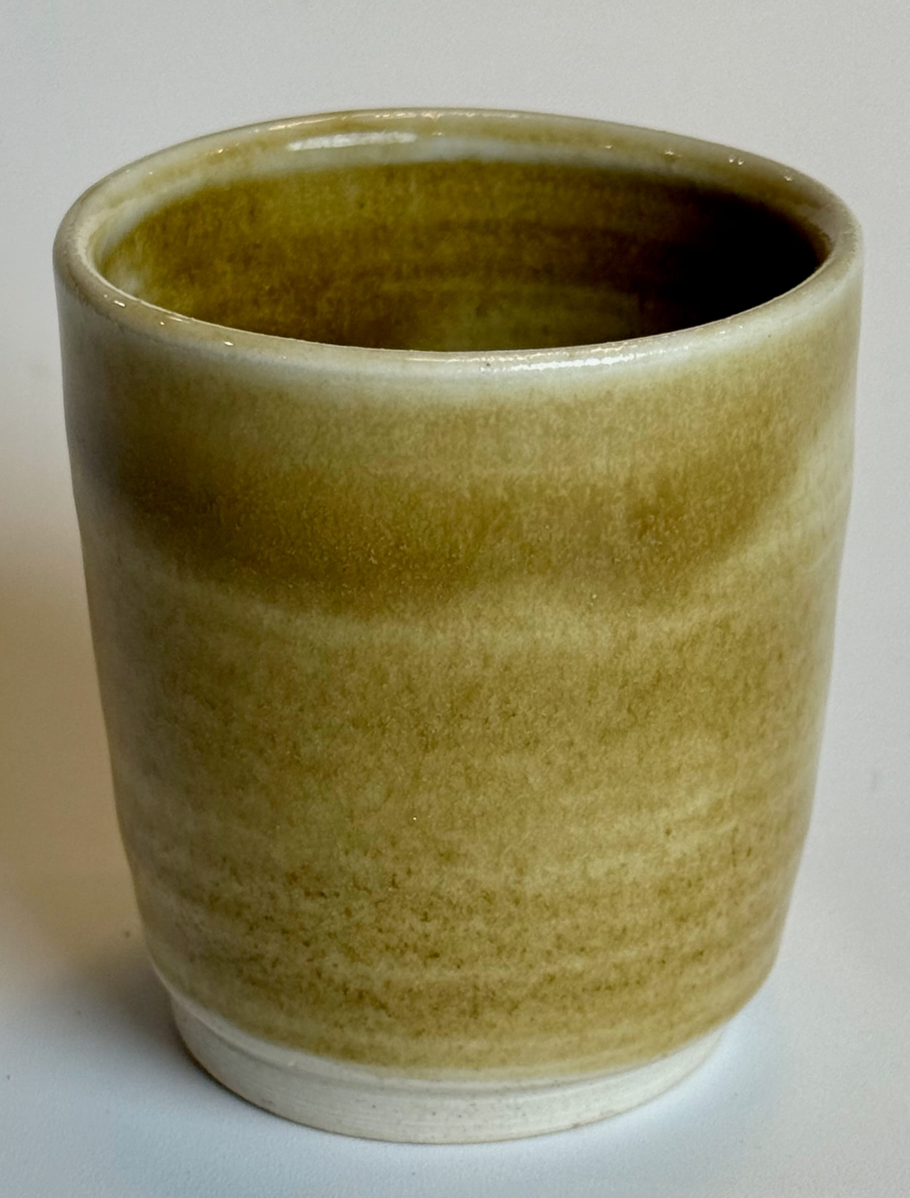 After the line blend setup was complete, the remaining glaze was combined and used on the cup presented above. This would correspond to Test 4, Tile 3 (55 / 45 Base-S to Base-Z). It's a melted, glassy glaze that exhibits some welcome movement where thicker, is not crazed, and corresponds to the following glaze recipe.