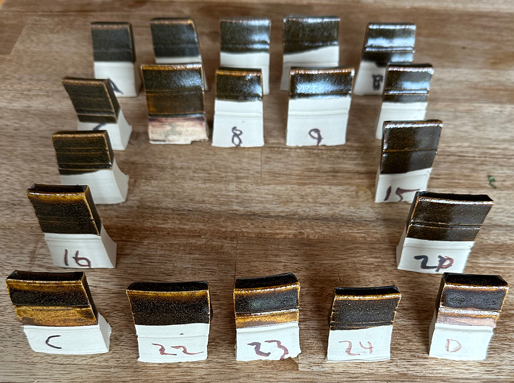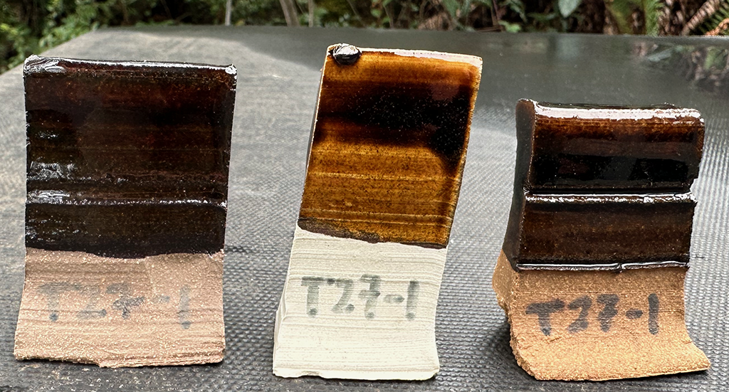 Also, the results are just like I've observed in the main kiln (and previously in the test kiln), though for the Tenmoku this has never been a concern like with the Base and Cobalt tests.