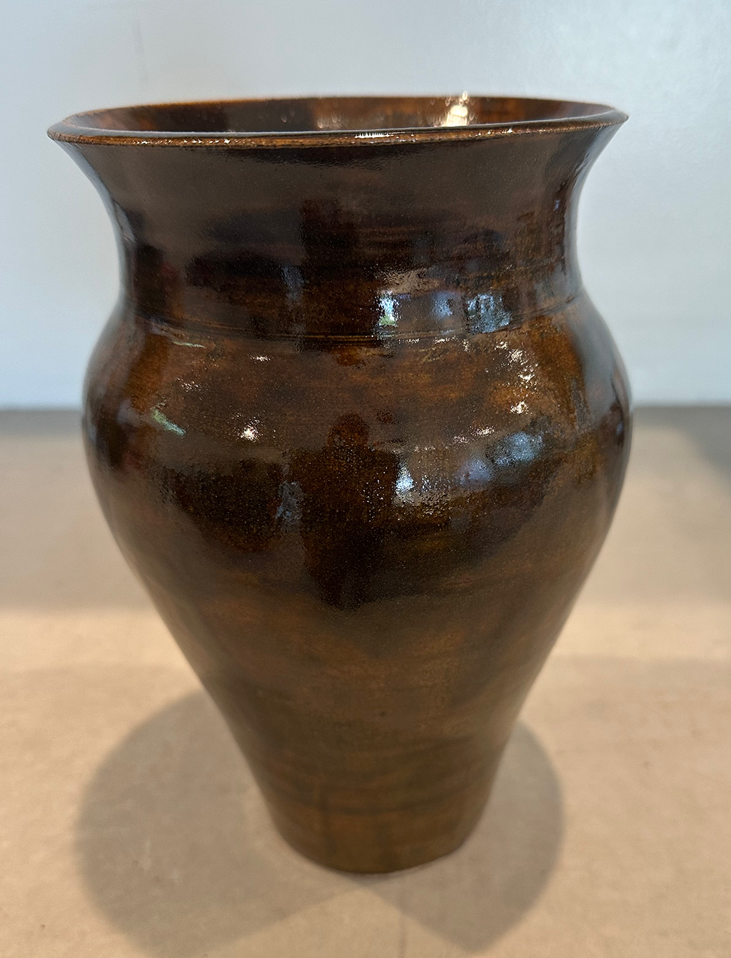 A very reliable glossy glaze that does not run or craze and that can be manipulated into many variations. Typically 8%-10% Red Iron Oxide is used. Sieving at 80M leaves the micas which have speckling effects. Sieving at 120M removes much of them and produces a more unified glaze. As with all the MV Granite glazes, it is better applied thicker with a specific gravity of 1.45-1.5.